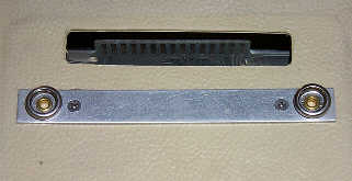 The Wang 600 shares a similar architecture to the 700-series for connecting external peripheral devices to the calculator. There are two connectors on the back panel of the calculator that provide for connection of external devices, along with a rather clunky-looking cover on the top panel of the machine (you can see the cover very clearly in the rear panel view of the calculator as shown below). This cover is removable, and underneath is a cutout in the case that provides access to a connector on the rear-most circuit board in the calculator that allowed for the insertion of ROM Modules that contain programs for a number of pre-defined applications. An article in a trade publication describing the Wang 600 mentions that, at the time(mid-1972), there were five available ROM Modules that provided programs for statistics, advanced statistics, surveying, algebraic programming, and extended alphanumeric program listing (on an external printer). The article also mentions that Wang provided a service whereby customer's programs could be custom coded into a ROM module, eliminating the need to load a program from cassette each time the machine is powered down. Each ROM Module could hold up to 2048 program steps. The ROM Modules used early MOS Integrated Circuit ROM devices (a total of four) as the storage medium for the program in the ROM Module. The ROM Pack is secured with two snaps, similar to that used on a coat or jacket. Simply grabbing the cover and pulling it upwards releases the snaps, exposing the connector. When an actual ROM Pack isn't in place on the calculator, Wang provided a dummy ROM Pack with no electrical connections in it to cover and protect the connector.