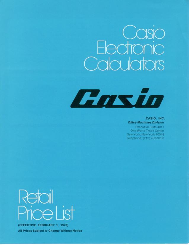 Casio Electronic Calculator Retail Price List, February, 1973