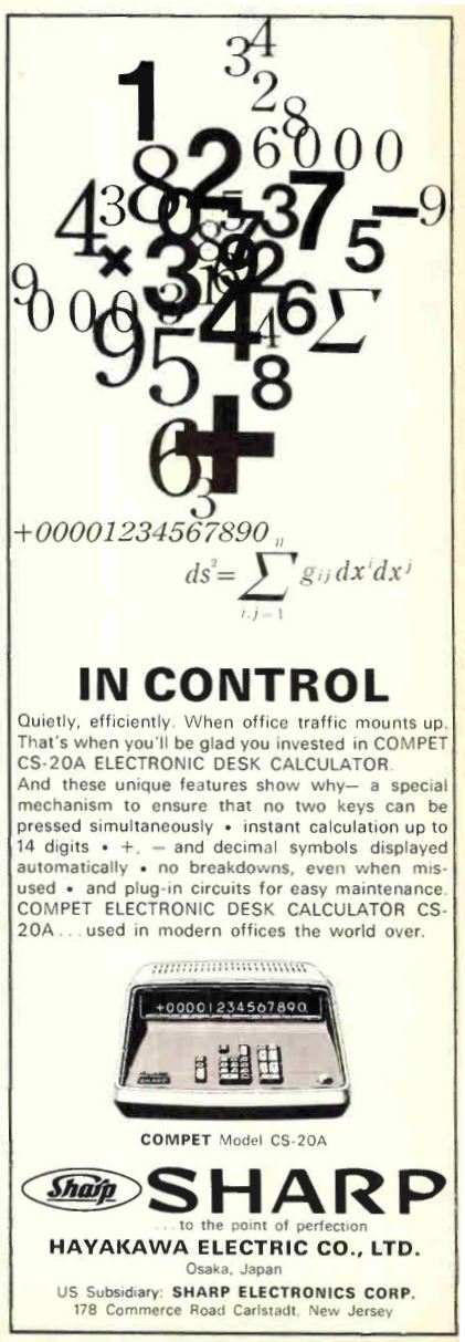 Advertisement for the Hayakawa Electric Sharp Compet 20 (Model CS-20A)