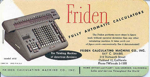 The Friden ACG-10 calculator was produced between 1954 and 1959. The Model