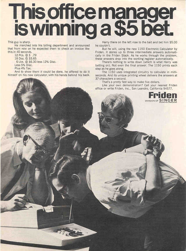Advertisement for Friden 1150 Electronic Printing Calculator