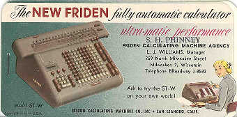 Friden ST-W Electromechanical Calculator Ink Blotter Ad, Circa 1949Sincere thanks for Michael Cain for donation of this vintage ad to the Old Calculator Museum