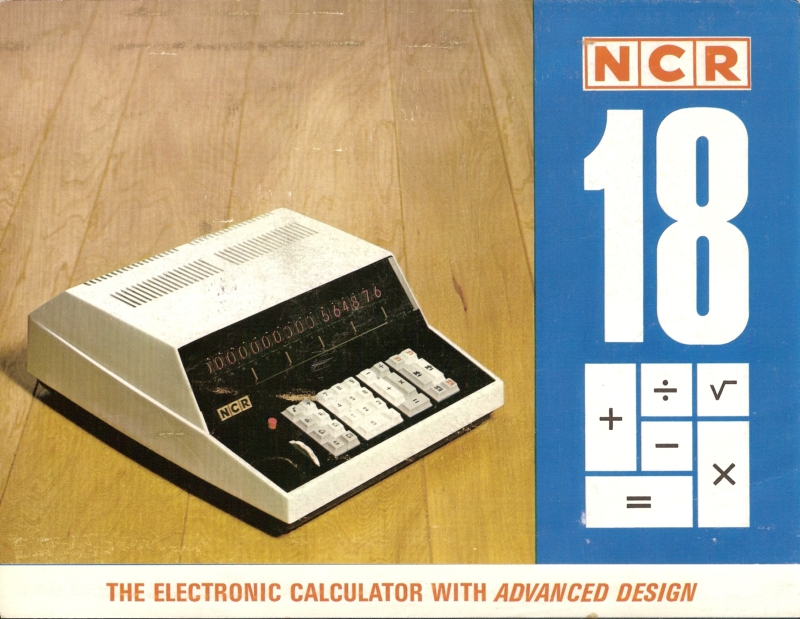 Front cover of NCR 18-3 Desktop Electronic Calculator Marketing Brochure, August, 1968.