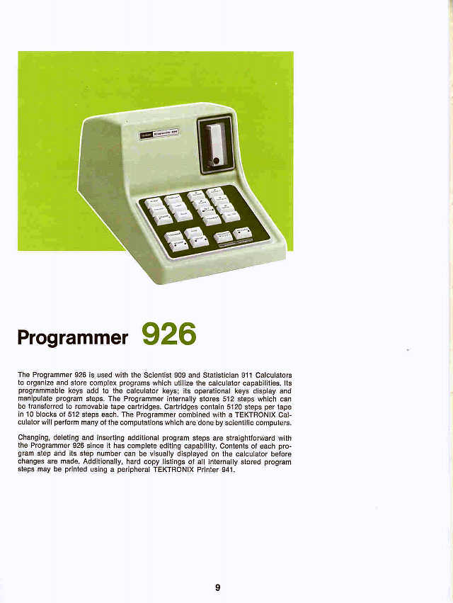 Tektronix 926 ProgrammerConnects to Tek/Cintra Model 909 or 911 Calculators and provides true programming functionality with conditionals, branching and subroutines.