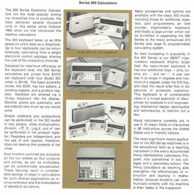 Wang 300-Series Information From Wang Labs' 1967 Annual Report (September, 1967), Products and Applications Section Courtesy Frank Trantanella