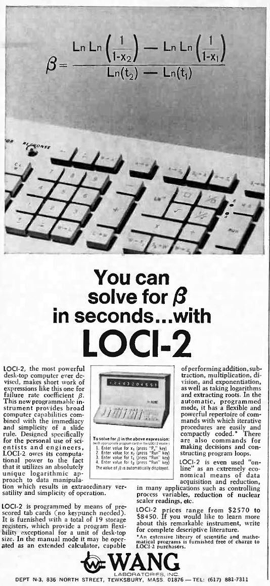 Wang Laboratories Advertisement for the LOCI-2 LOgarithmic Computing Instrument Electronics Magazine, March 7, 1966