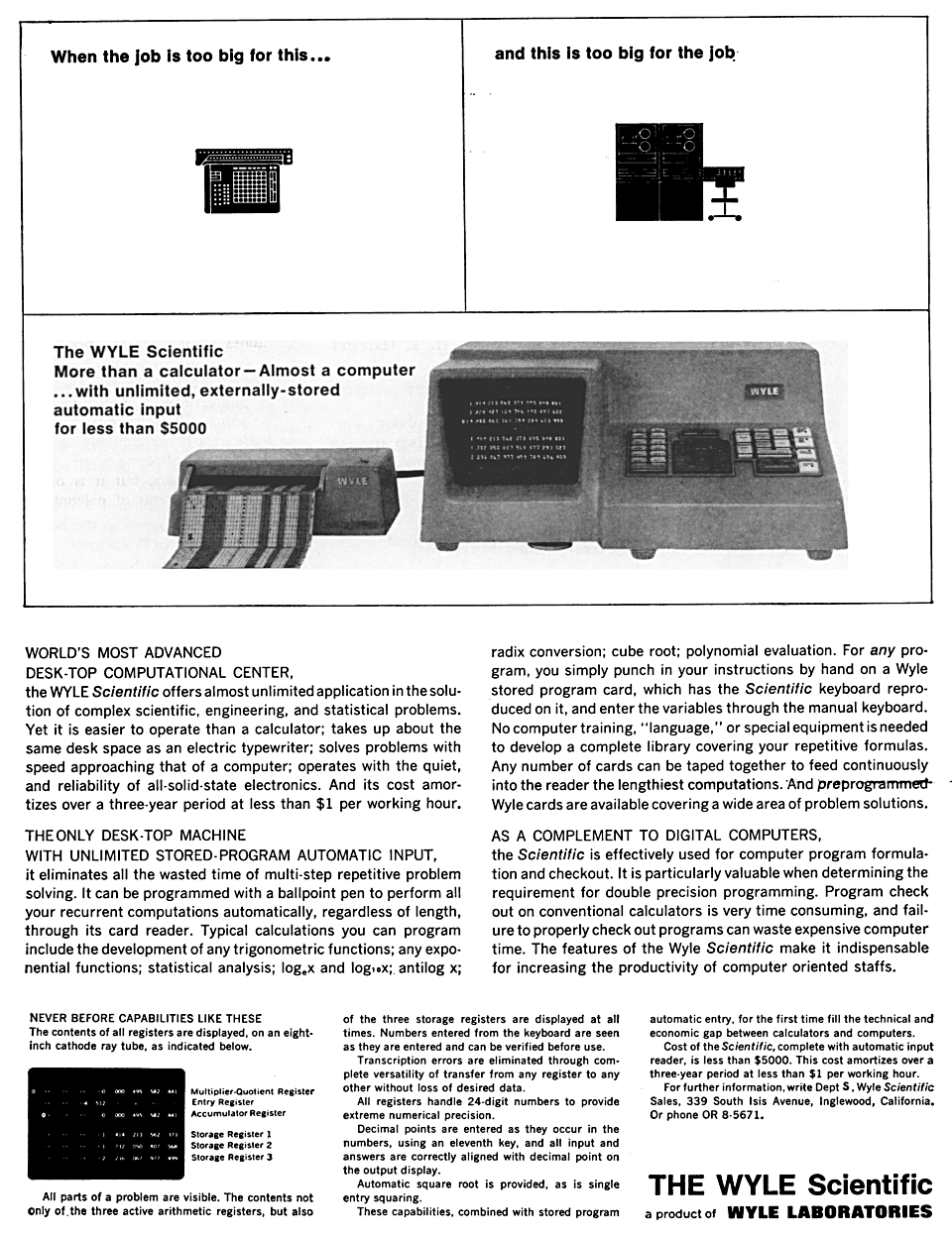 Wyle Scientific Electronic Calculator Advertisement