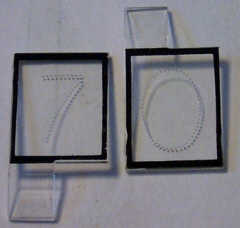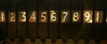 The display elements used in Canon's first-generation calculators is an electro-optical design, relying on tiny incandescent lamps to side-light thin panels of clear plastic that have fully-formed numerals and symbols (such as the decimal point) engraved into the surface as a series of tiny dots. These plastic panels are stacked one atop another, much like the individual digit-shaped electrodes in a Nixie tube.