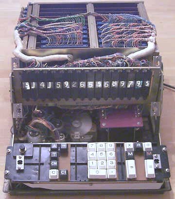 The most striking thing about the first-generation Canon calculators, apart from the sheer size of the machines, is their display. The displays used on these machines are a unique display technology devised by the optical wizards at Canon expressly for use in their calculator. It is theorized, though not historically proven, that Canon devised this display technology as an alternative to using the Nixie tube gas-discharge display technology used by the other Japanese electronic calculator manufacturers at the time (primarily Hayakawa Electric(Sharp) and Casio Computer Co.) due to the fact that Burroughs Corp. in the US had invented the Nixie tube display technology, and the appropriate licensing agreements to allow Japanese companies to manufacture Nixie-type display tubes were not yet in place. It is thought that perhaps rather than potentially run afoul of licensing or patent snags with the US, Canon would simply develop their own display technology. Importing Burroughs-made Nixie tubes would have been prohibitively expensive due to shipping costs. So, Given Canon's deep experience with optics, an electro-optical type of display would be a natural alternative to using Nixie tubes in Canon's calculator. At the time, Hayakawa Electric and Casio simply used Nixie tubes manufactured by Japanese electronics component manufacturers Hitachi and Nippon Electric (NEC), and let those companies worry about any possible run-ins with Burroughs, though in the end, both the manufacturers of the copycat Nixie tubes and the calculator manufacturers that used them ended up settling up with Burroughs for all of the display tubes they had used prior to the licensing being set up (brokered through Japan's MITI(Ministry of International Trade and Industry) and the US Federal Trade Commission), and paid royalties for every Japanese-made Nixie tube used thereafter.