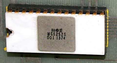 The 7440 is based on a two-chip LSI chip set made by MOS Technology (not to be confused with Mostek, which was a different company), with each ceramic-packaged chip having 28 pins. As noted earlier, the chips are date- coded the 12th and 13th weeks of 1974. The part numbers of the chips are MCS2525-001 and MCS2526-001. It is possible, though unverified, that MOS Technology was the first IC manufacturer to cram the logic of a fully-featured scientific calculator onto only two chips. This chip set went through a number of revisions over its lifetime with the MCS2525 going to version 004, and the MCS2526 going to version 005.