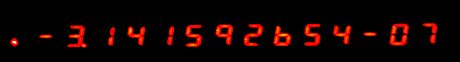 The left-most digit of the display is reserved for the sign of the number, as well as error indication. The next ten digits were used for the main numeric display, be it a floating point number, or the mantissa in the case of scientific notation. Three more seven segment displays were used to display the exponent when the calculator was in scientific notation (one digit for sign of the exponent, and two digits for exponent itself).
