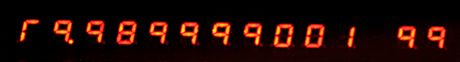 The MOS Technology chip set catches all error conditions, including division by zero, extraction of the square root of a negative number, raising a number to a negative power, nesting of parenthesis more than two levels deep, and calculation over/under-flow. The machine does not provide input overflow detection, simply ignoring any digit entries in excess of its ten significant digit capacity. Error or overflow conditions are indicated by the left-most digit in the display showing an unusual combination of segments. When such a condition exists, the machine ignores any further keyboard presses until the [C] (Clear All) key is pressed to reset the error condition. The calculator performs an automatic clear operation at power-up. Occasionally, though, the power-up initialization fails, and gibberish appears on the displays, requiring a press of the [C] key to force the machine into a normal operating state. This could be a result of component aging, or perhaps a minor design flaw either in the MOS integrated circuits or the power supply.