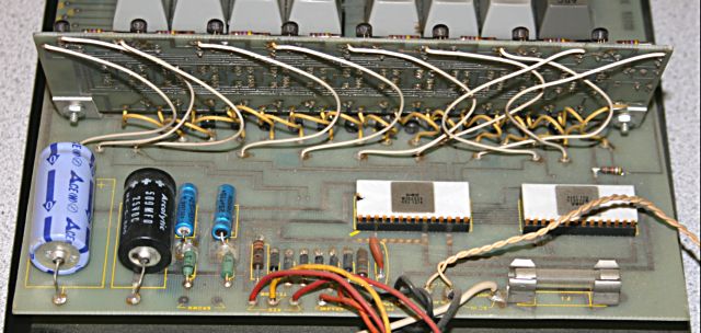 Back view of Internals. Note hand-wired connections between Main and Display Boards