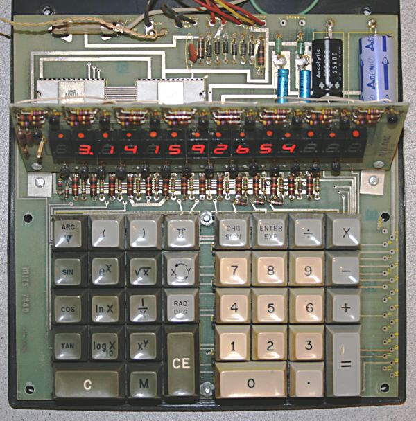 The last desktop electronic calculator offered by MITS was the Model 7440, exhibited here, introduced in early 1974. The 7440 was a scientific calculator, providing many of the features of earlier expensive desktop scientific calculators such as those made by Wang, Hewlett Packard, Compucorp, and others. However, the 7440 was a bit dated and out-classed as soon as it was introduced, as in mid-1972, Hewlett Packard had introduced the revolutionary shirt-pocket, scientific, rechargeable battery-powered HP-35 calculator, which provided essentially the same functionality as the 7440 in a very high-quality, portable package, for $395. While the 7440 was priced at $199.95 for the kit, and $299.95 for the fully-assembled unit, the allure of a "take anywhere" calculator like the HP-35, with HP's incredible reputation for quality and innovation, was worth the extra $120 to many professionals who were interested in a handheld turn-key solution from a high-quality company, rather than buying a pre-built desktop machine from a small time player like MITS. While those on a budget likely found the $199.95 price for the 7440 calculator in a kit form attractive, the market was changing so fast that the allure of the 7440 proved to be short-lived.