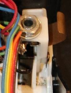 Fortunately, an exact replacement for the failed microswitch was found in the museum's supply of spare parts. Since the wiring related to the power jack, the microswitch, the power switch, and the battery pack was corroded from the battery pack leakage, it was all replaced with wire of the correct gauge, type, and insulation color.