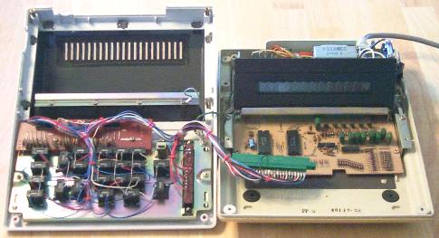 the display shines through. The lower part contains the main logic board with the display, and the power supply. The two halves