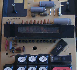Internally, the machines are also nearly identical. The circuit board layout is very similar, with identical keyboard, power supply circuitry, and clock generator. The US*10 uses a Texas Instruments TMS0106 single chip LSI (versus the TMS0103 in the US*8 Version I), and has an 11-digit Burroughs Panaplex panel (versus 9-digits on the US*8 Version I's display panel). The display driver circuitry is identical between the two machines, with a couple of additional digit drivers for the additional digits that the US*10 has over the US*8 Version I.