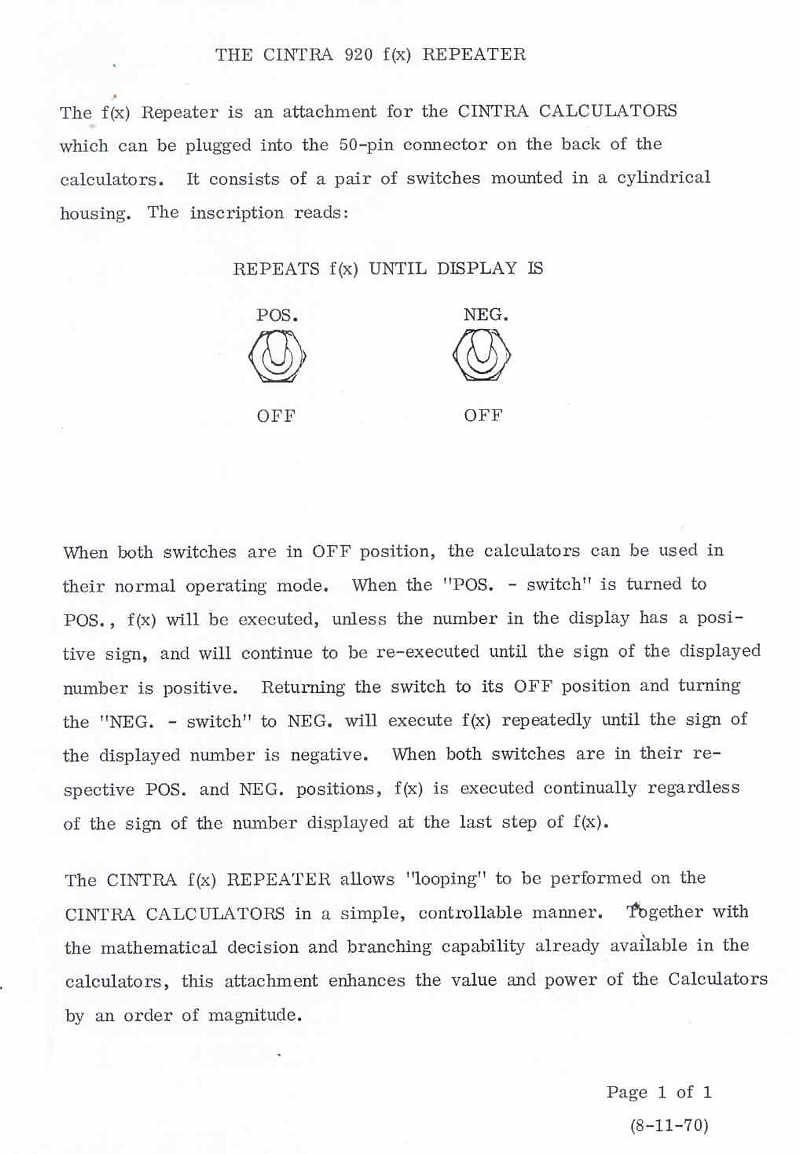 This material was made available to the Old Calculator Web Museum through the generosity of Irwin Wunderman, founder of Cintra Corp.