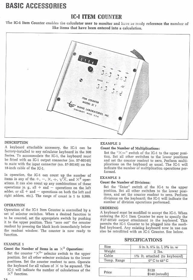 Wang IC-1 Item Counter Product Brochure