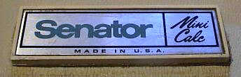 The nameplate for the "Senator Mini Calc" version of the ICM-816