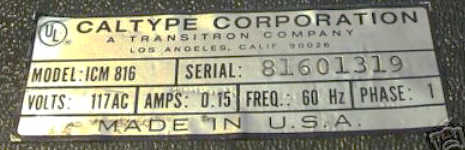 Sometime during the mid-'71 time frame, fully assembled ICM 816 calculators were sold under OEM contract to Caltype Corporation (a subsidiary of Transitron Electronic Corporation), of Los Angeles. Transitron Electronic Corporation was founded in 1952 to manufacture transistors, and did quite well for a time, but changes in transistor fabrication technology and the advent of integrated circuits eventually led to the demise of the company in 1986. Caltype Corp. was a spinoff of Transitron, incorporated in September of 1965 as a marketer of low-cost business machines manufactured by other companies. Caltype marketed the ICM-816 as the "Senator Mini-Calc". The only difference between the ICM-816 and the Caltype Corp. Mini-Calc the name plate on the top cover of the machine, which reads "Senator Mini-Calc/Made in USA", and the model/serial number tag, which replaced ICM's name with Caltype's. The model number of the machine listed on the model/serial number tag of the Caltype Mini-Calc remains ICM-816, and the serial-numbering scheme follows ICM's convention of "816" as the first three digits of the serial number.