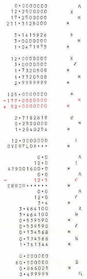 available from the keyboard are: Trigonometric functions (sin, cosine, arcsine,