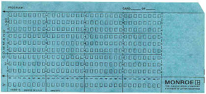 An Unused Monroe Punched Card for use with the CR-1 Card Reader