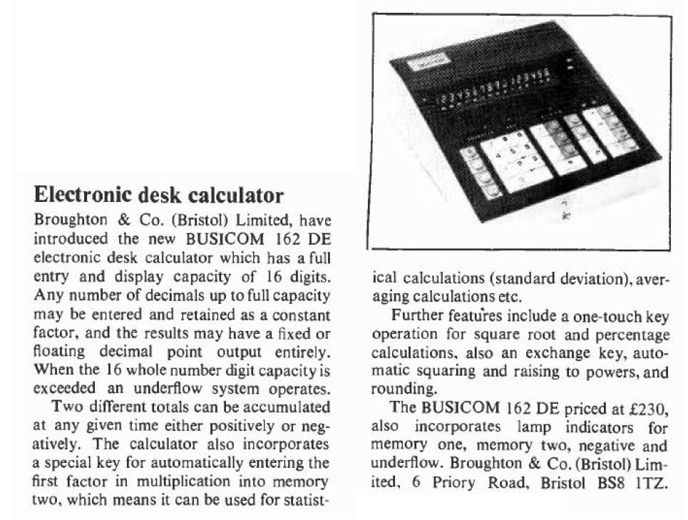 Busicom 162DE Announcement