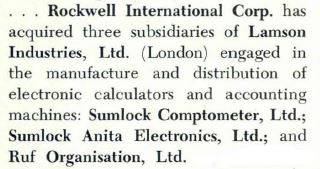 Rockwell Acquisition of Lamson Industries Calculating Machine Subsidiaries