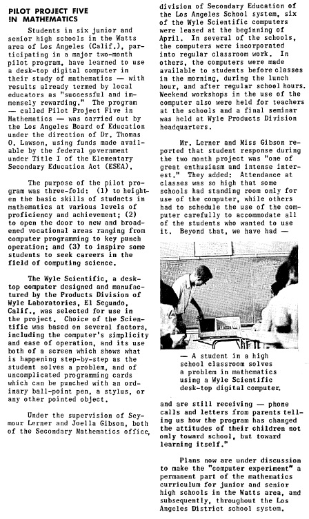 News Archive - Wyle Laboratories WS-02 as Educational Tool in Los Angeles School System